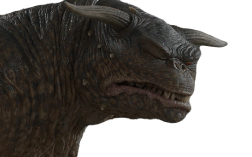 Animated sticker of Vinz Clortho from Ghostbusters, a horned monster with glowing red eyes and an intense glare.