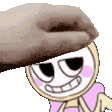 a close up of a cartoon character with a hand on his head .