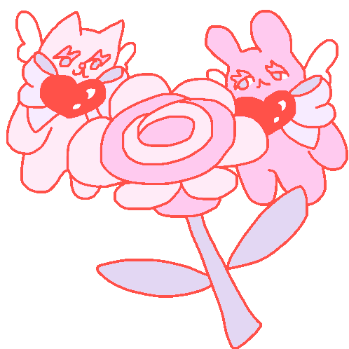 Two adorable Glittery Lilac winged creatures, a kitty and a bunny, hold hearts beside a pink rose, celebrating Valentine's Day. By Cait Robinson.
