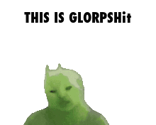 A green, alien-like "Glorp" creature with small horns on its head, nodding and moving, accompanied by the text "THIS IS GLORPSHit".