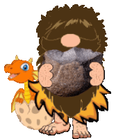 An animated sticker featuring a green-skinned gnome caveman character holding a club, standing alongside a small red dragon.