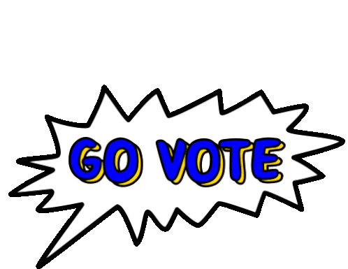 Animated sticker with the bold text 'GO VOTE' in a speech bubble, encouraging participation in elections.