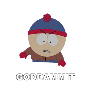Stan Marsh from South Park expresses frustration with the captions 'Goddammit' and 'This Is Fucking Ridiculous'.