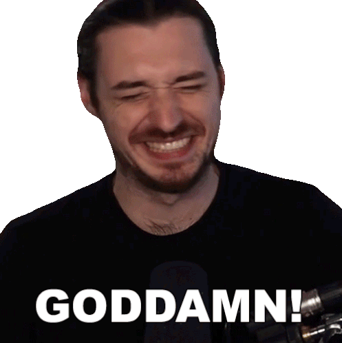 Aaron Brown laughs with his eyes closed, then smiles, with the word "GODDAMN!" displayed.