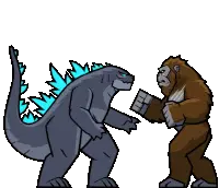Animated Godzilla, the legendary kaiju, unleashing its powerful blue atomic breath in a stylized form.