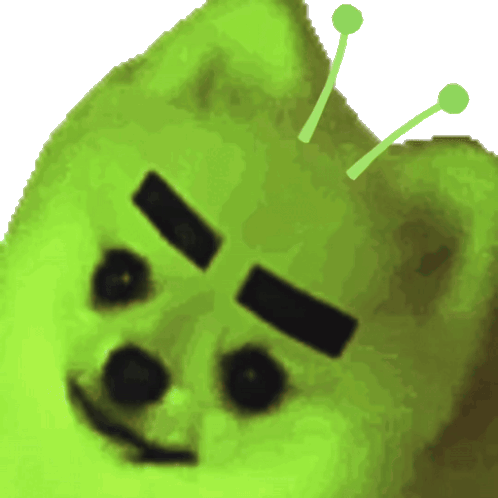 a green dog with antennas on its head looks like shrek