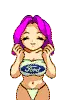 A blue horned bunny with 'horny' text, associated with Golden Sun and Spiral Shell, for a playful sticker.