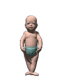 a baby in a blue diaper is standing on its hind legs