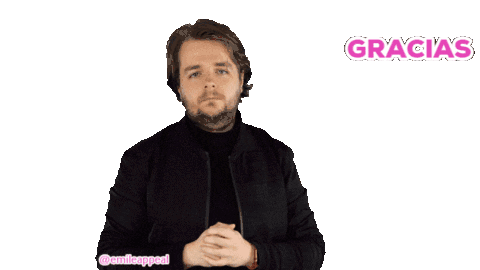 A man, Emile Aleman, points to the word 'Gracias' (Thank You) with a grateful expression, conveying appreciation.