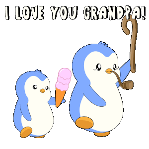 A cute animated sticker featuring a grandpa penguin with a cane and a younger penguin with ice cream, with the text 'I LOVE YOU GRANDPA!'.