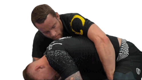 Jordan Preisinger demonstrates a grappling technique, attempting to execute a body triangle during a wrestling session.