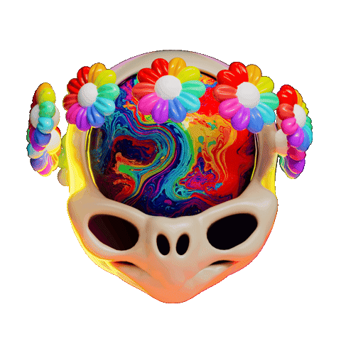 a skull with a colorful flower crown on it
