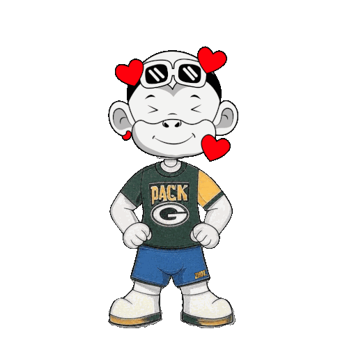 a cartoon character wearing a green bay packers shirt and shorts