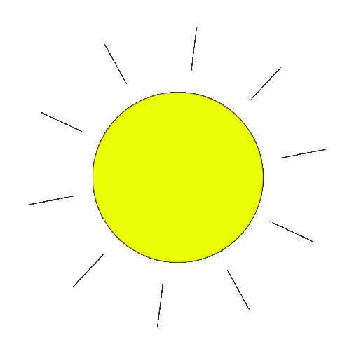 A bright yellow sun with radiating lines spins continuously, symbolizing energy and warmth.