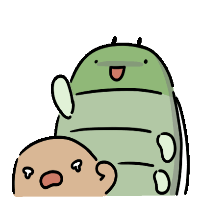 A green turtle-like character playfully hits a brown character, who appears to be crying or distressed.