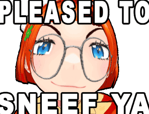 Grodytube, an anime girl with glasses, greets with the phrase 'Pleased to Sneef Ya'.