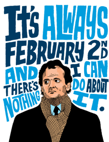 Bill Murry as Phil Connors from Groundhog Day, lamenting that it's always February 2nd and there's nothing he can do about it.