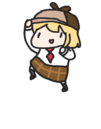 Amelia Watson's iconic 'Ground Pound' pose in a cute chibi animated sticker, featuring her signature hat and plaid skirt.