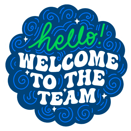 An animated blue and white sticker displaying 'hello welcome to the team', perfect for new team member greetings.