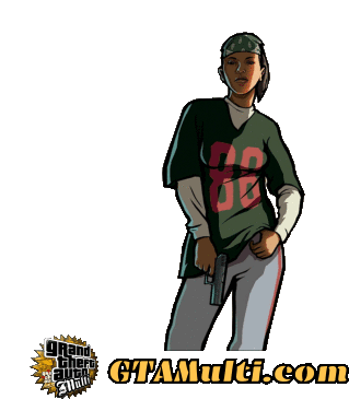 Denise Robinson from Grand Theft Auto: San Andreas stands ready with a pistol, a cool gaming sticker.
