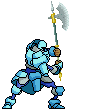 A pixel art Guardian Heroes soldier in light blue armor, wielding a large axe in a dynamic pose.