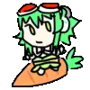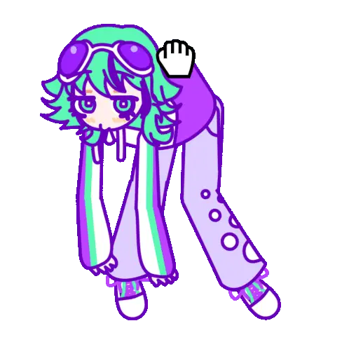 Gumi Gumiixi, a cute anime girl with purple hair and cat ears, rings a golden bell with a determined expression.