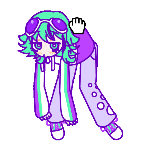 a cartoon of a girl with green hair and purple pants