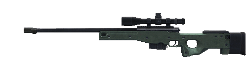 a green and black sniper rifle with a scope