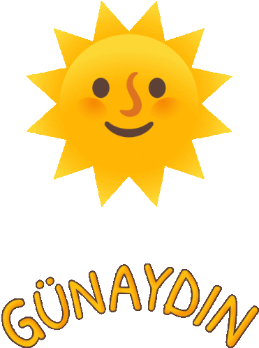 A cheerful animated sun emoji with bright rays and the Turkish greeting "Günaydın" (Good Morning) below it.