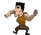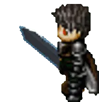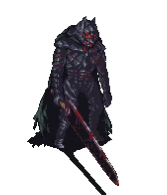A pixelated Guts Berserk rat-like monster, muscular and bipedal, runs aggressively with a small blade in its hand.