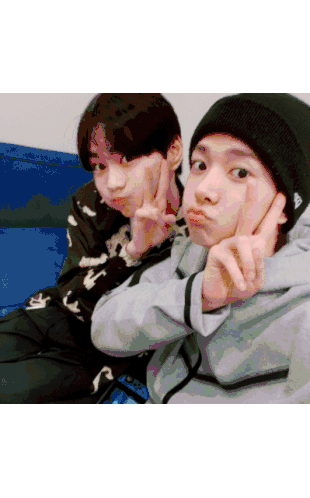 A compilation of selfies featuring ENHYPEN members Jungwon (양정원) and Heeseung (이희승), showcasing their bond.