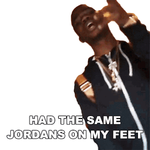Roddy Ricch gestures while the lyric 'Had The Same Jordans On My Feet' appears, from his popular song.