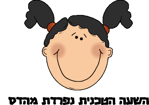 a cartoon of a girl with pigtails and the words in hebrew behind her