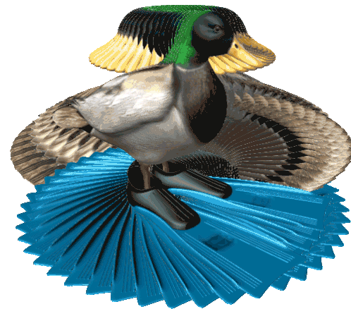 A mesmerizing duck animation with a Hall of Mirrors effect, spinning and assembling in vibrant colors.
