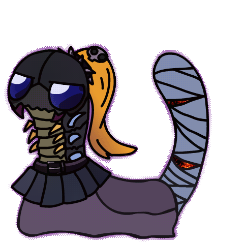 a cartoon drawing of a worm with a ponytail