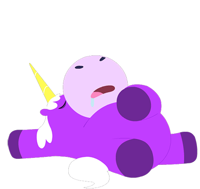 Hanazuki Full Of Treasures character and a purple unicorn are fast asleep, looking tired and drooling.