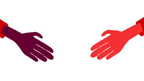 Two stylized hands, one darker and one lighter, meet in a firm handshake, symbolizing agreement, greeting, or unity.