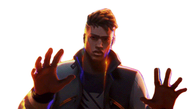 Valorant agent Phoenix raises his hands in a gesture of surrender or giving up, perfect for showing resignation or defeat.