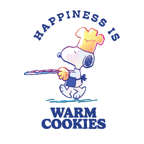 Snoopy the chef bakes warm cookies, celebrating the simple joy of fresh treats. Happiness is warm cookies!