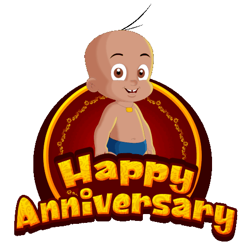 Raju from Chhota Bheem celebrates a Happy Anniversary, perfect for sharing warm wishes and joy on special occasions.