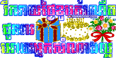Glittering Happy Birthday graphic with a gift box, cake, and flowers, perfect for celebrations.