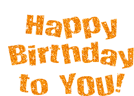 Vibrant orange animated sticker wishing 'Happy Birthday To You' with sparkling glitter effects.