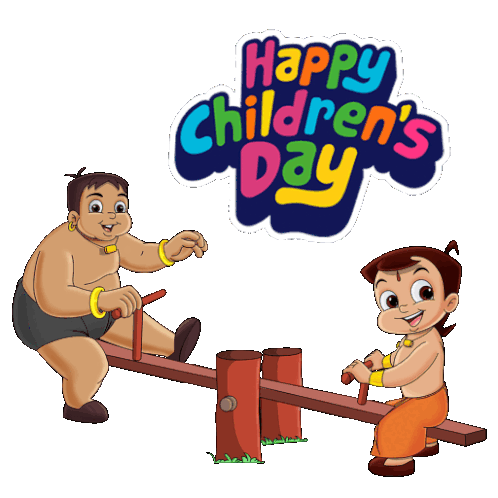 two cartoon characters are playing on a seesaw in front of the words happy children 's day