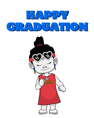 a cartoon girl wearing heart shaped sunglasses and a shirt that says ' happy graduation ' on it