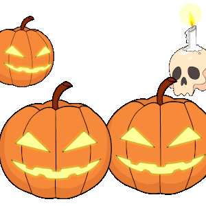 Pudgy Penguin celebrates Halloween, surrounded by glowing jack-o'-lanterns and a spooky skull with a lit candle.