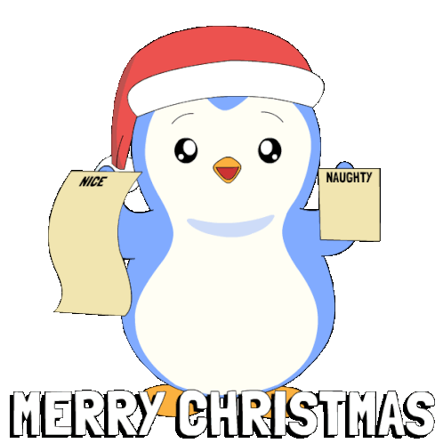 a penguin wearing a santa hat is holding a note that says nice and naughty