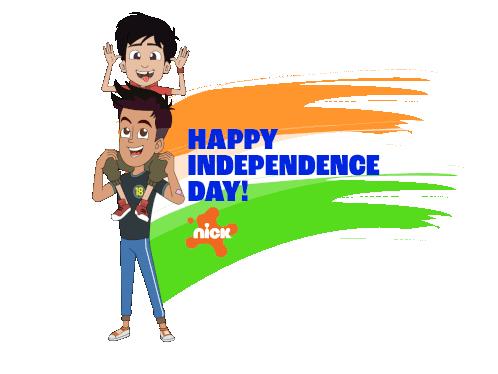 a cartoon of a boy carrying another boy on his shoulders with the words happy independence day