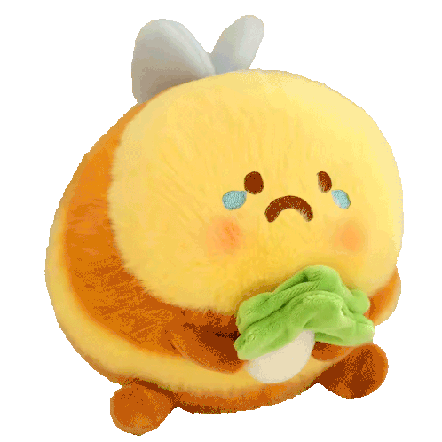 A cute plush bee with a kiss mark transforms from sad to happy while holding a green leaf, featuring shiina amanogawa.