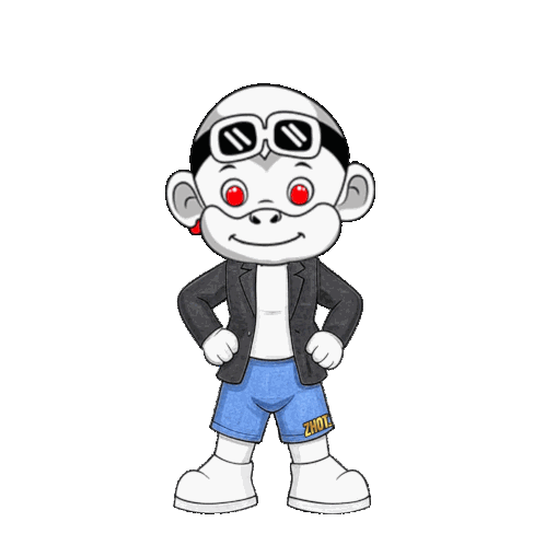 a cartoon of a monkey wearing a jacket and shorts with the word zhot on them