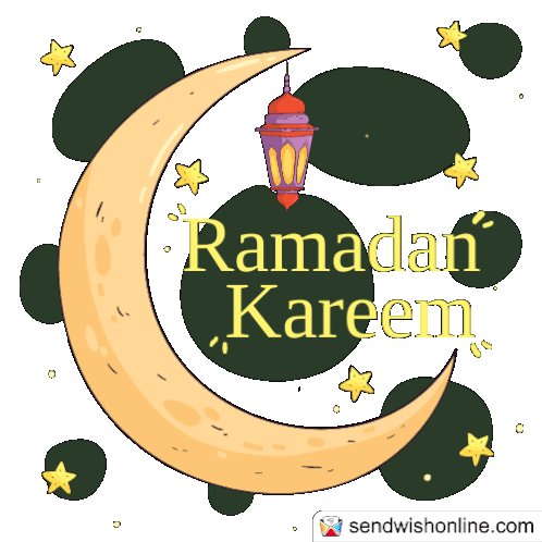 a cartoon drawing of a crescent moon with the words ramadan kareem